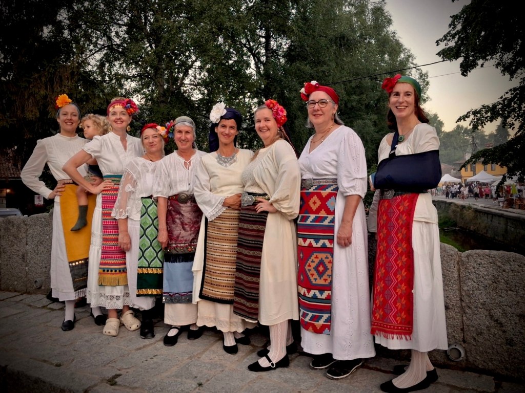 Koprivshtitsa Festival only happens every 5 years and gathers folklore groups of all ages, from all the diverse and proud regions of Bulgaria. It is brimming with village song, costume nuance and dialect. It was an honour to be invited to perform our own ‘kitka’ (bouquet) of Bulgarian songs as part of the international ensemble program, traditionally held on the village square, on the Saturday evening.