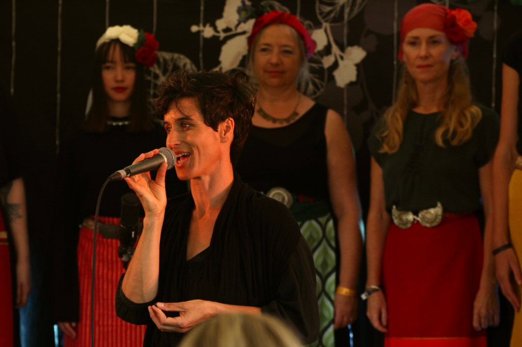 The earlier part of the evening had featured large ensembles from abroad, sometimes regrettably singing over backing tracks – which might please some festive audiences but definitely disappointed those ardent acapella craftswomen who understand how powerfully vulnerable is it to carry acapella music – particularly in smaller chamber ensembles like our octet – something we work tirelessly for.